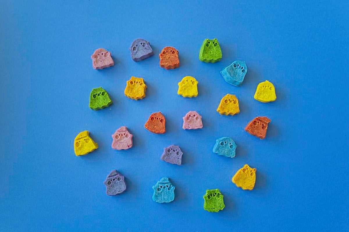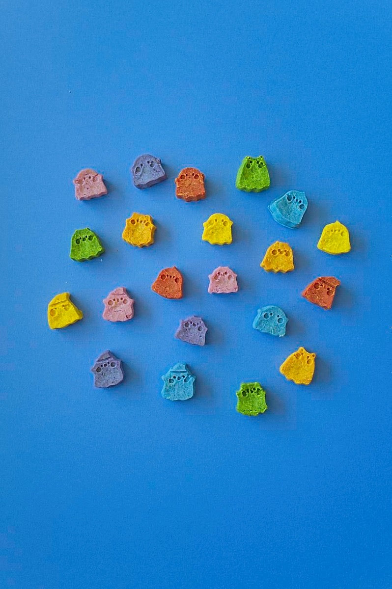 Ingredients: 100% premium human grade chicken breast, goat cheese, organic goat milk powder, gold standard organic vegetable colouring (turmeric powder, dragonfruit powder, blueberry powder, blue spirulina powder, green spirulina powder)